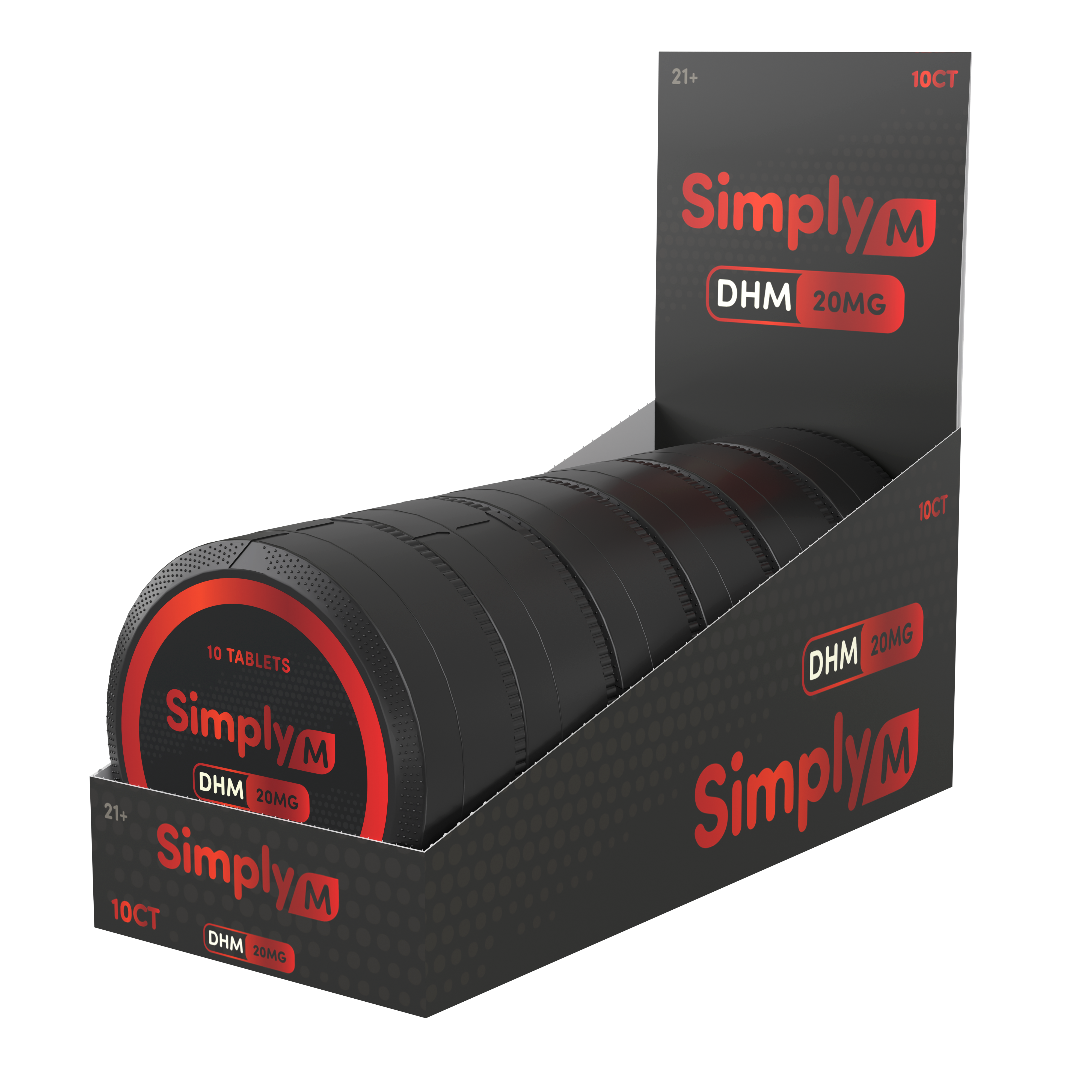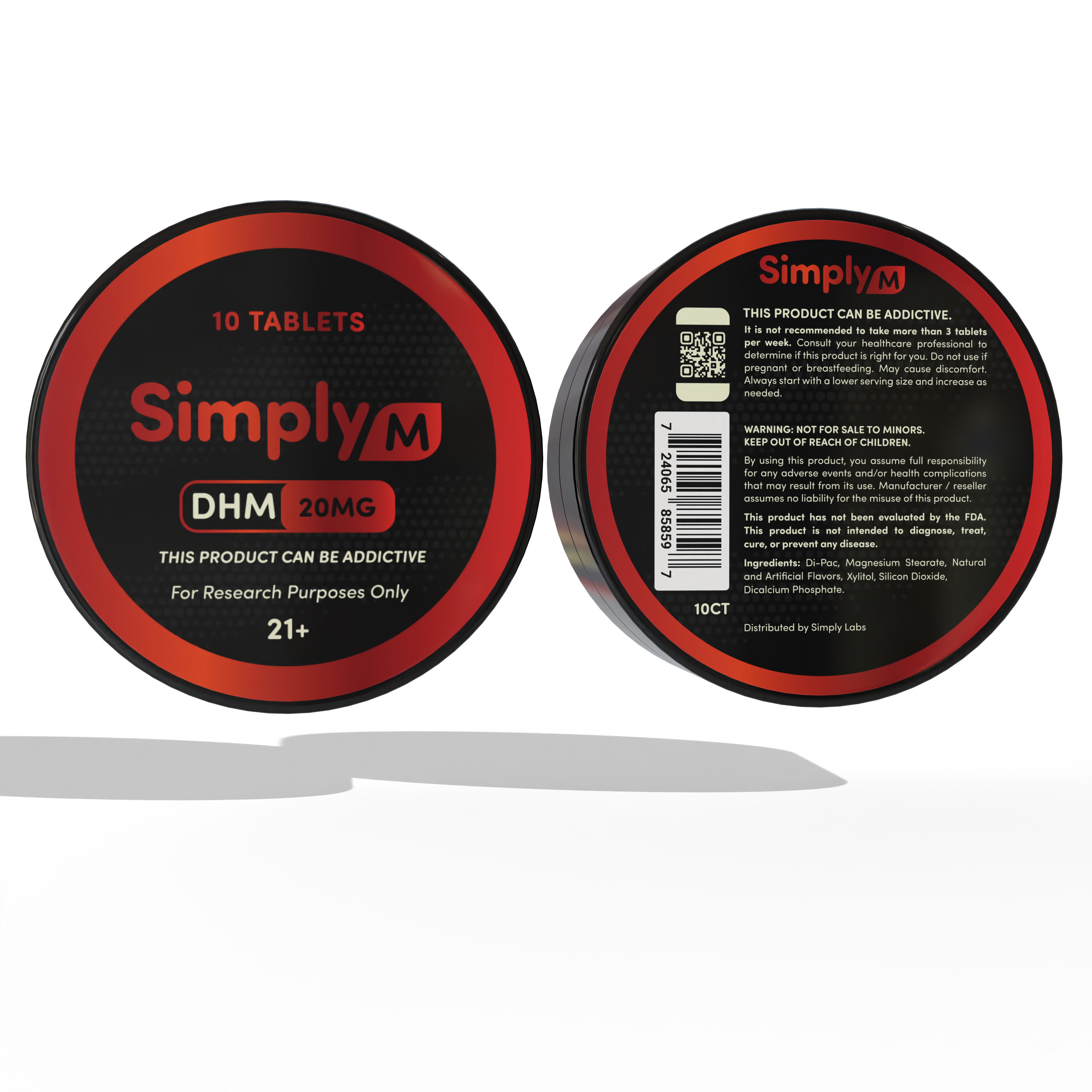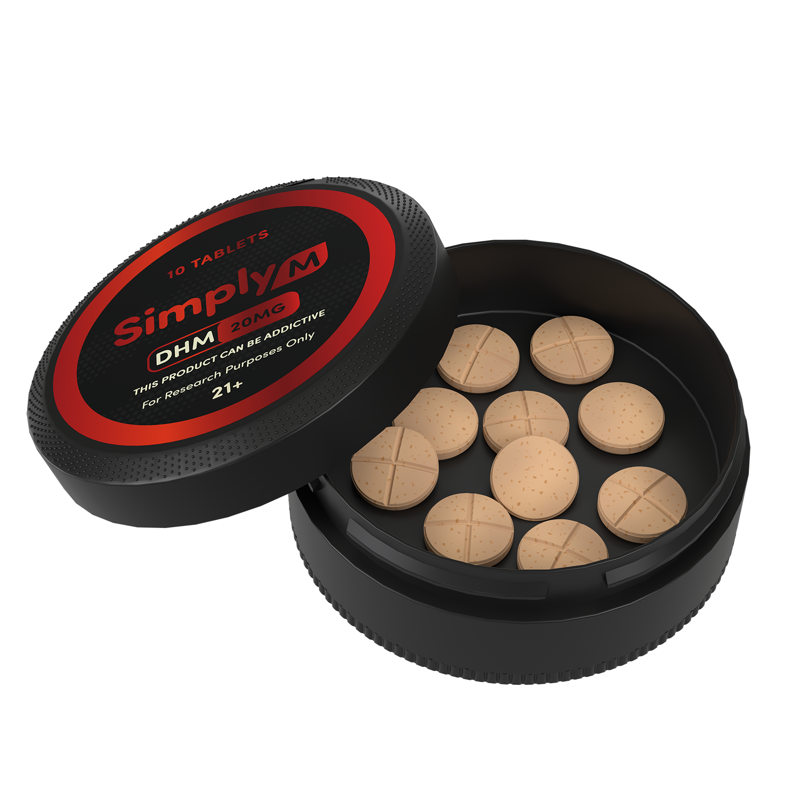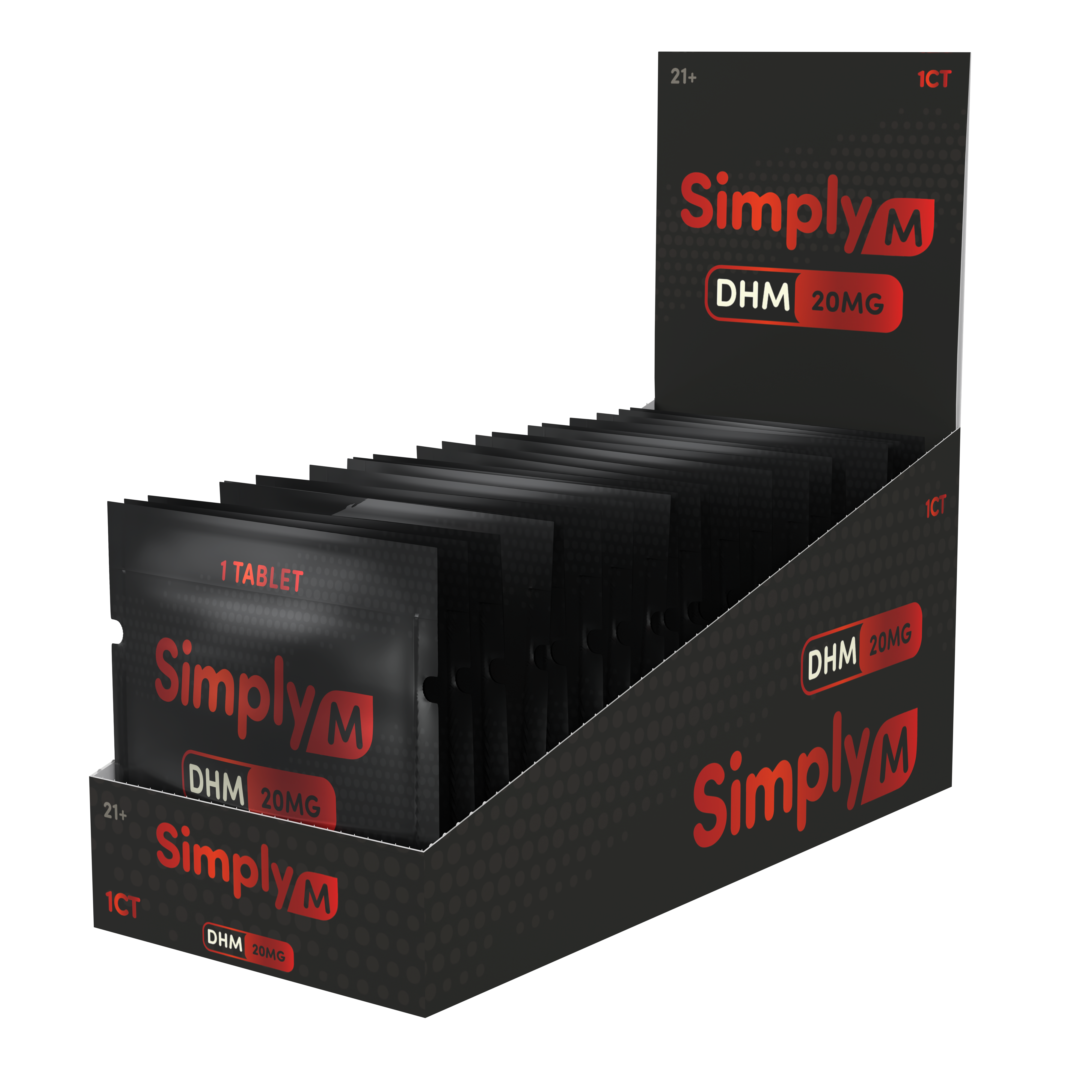 Each tablet contains 20mg of DHM (dihydro mitragynine) and comes in single packs, 3-count pouches, and 10-count pucks. Simply M contains zero 7-OH and no banned substances, making it fully legal anywhere kratom is allowed.